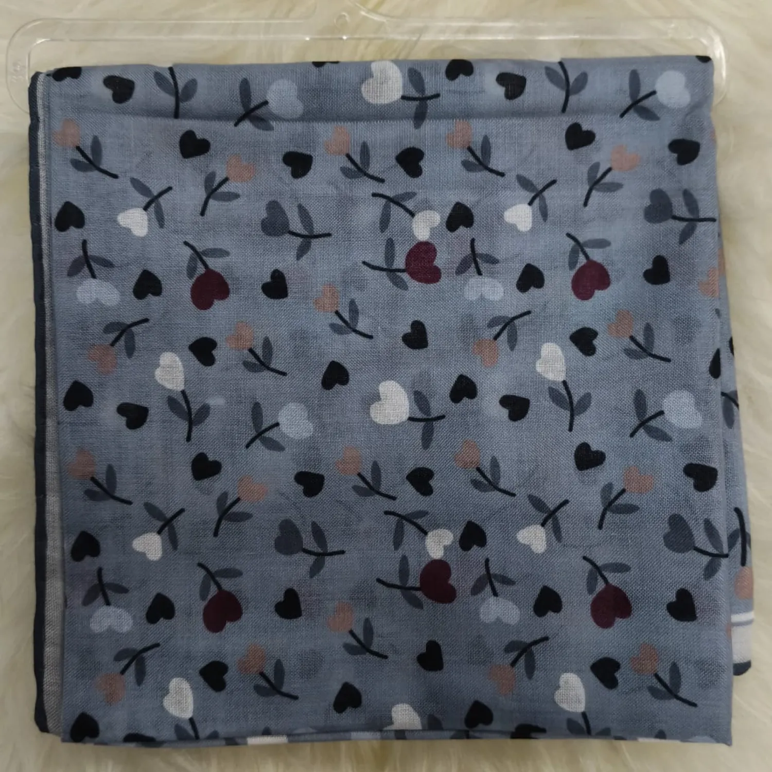 Açık Gri Zemin Üzerine Siyah, Beyaz ve Bordo Kalp & Dal Desenli Minimal Kare Kadın Eşarp