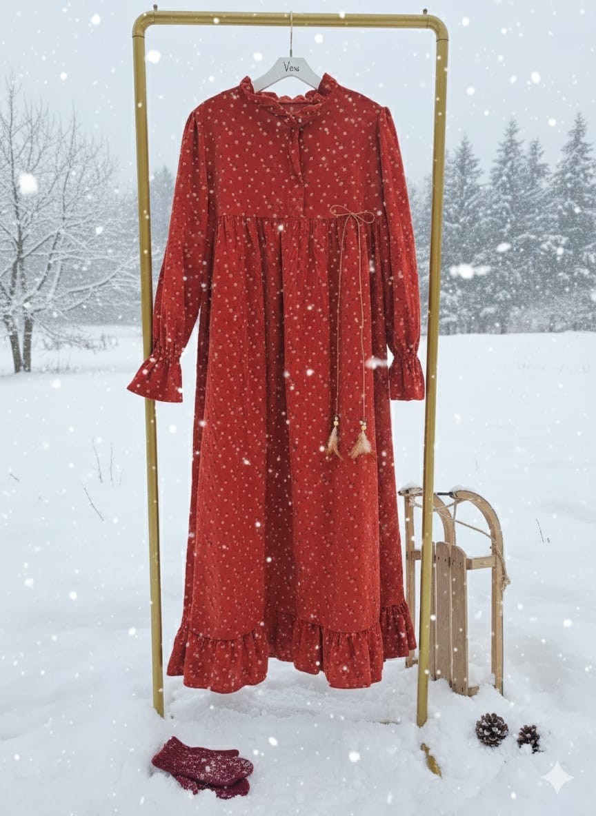 Kışlık yumuşacık fitilli kadife elbise,