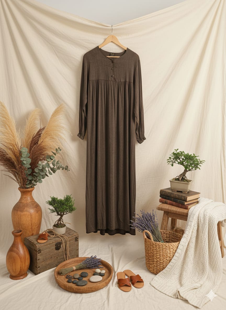 KAHVE KUPRA ELBİSE