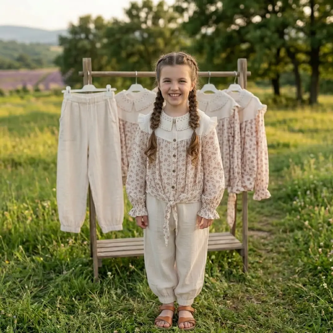 9-10-11-12 yaş aralığı için tasarlanan kız çocuk müslin gömlek ve bol pantolon takım, rahat kalıbı ve doğal dokusuyla günlük kullanımda konfor sunar. Hafif ve nefes alabilen müslin kumaşı sayesinde çocukların gün boyu özgürce hareket etmesine yardımcı olur.