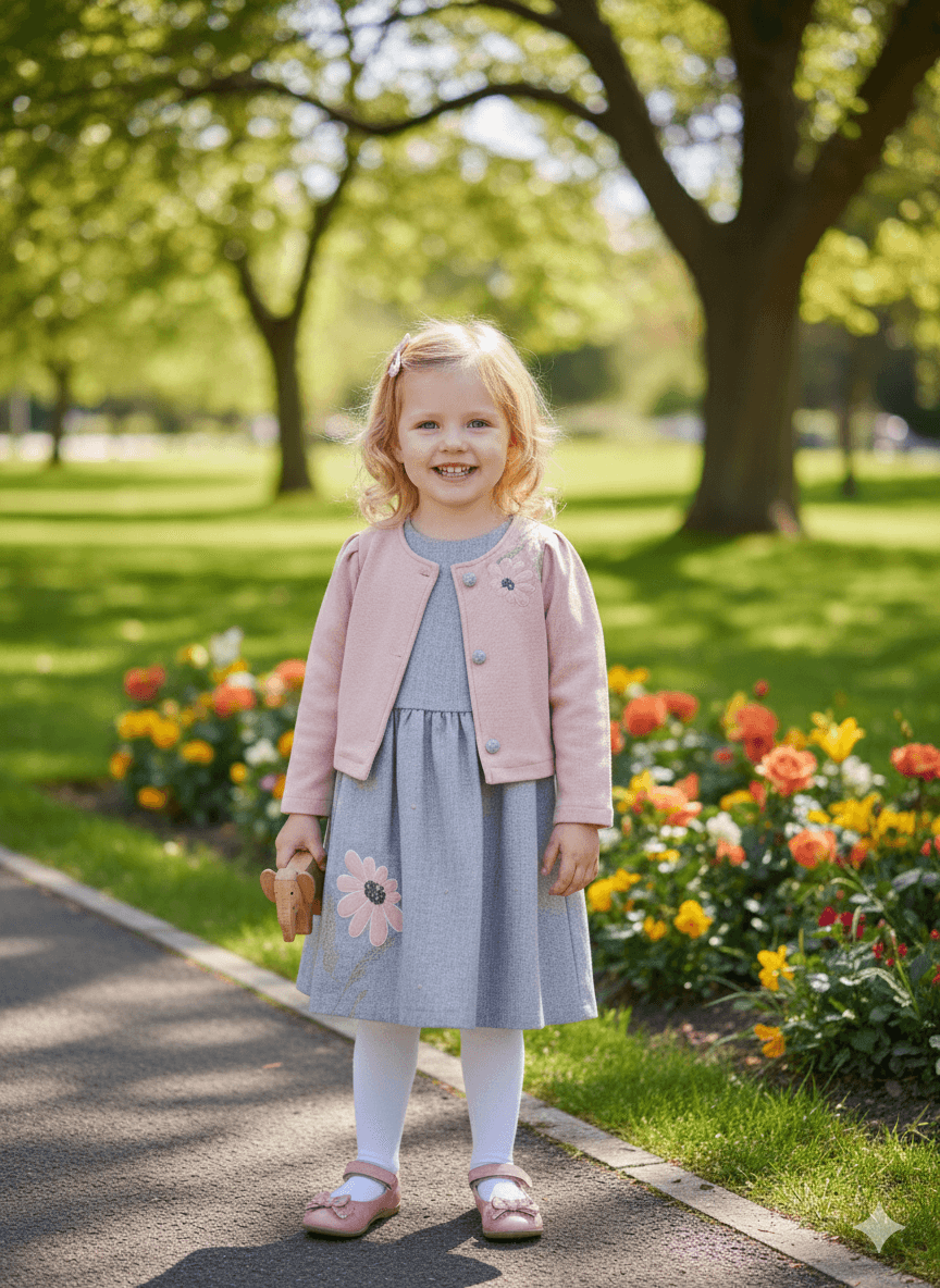 İç elbisesi kısa kollu olup dış ceketi ve çiçek detayları ile küçük hanımlara keyifli bir kullanım sağlar.