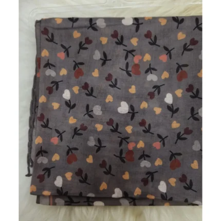 Gri Zemin Üzerine Renkli Kalp ve Dal Desenli Minimal Kare Kadın Eşarp