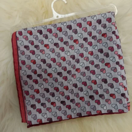 Gri Zemin Üzerine Kırmızı ve Bordo Kalp Desenli Minimal Kare Kadın Eşarp