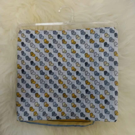 Gri ve Sarı Kalp Desenli Minimal Kare Kadın Eşarp