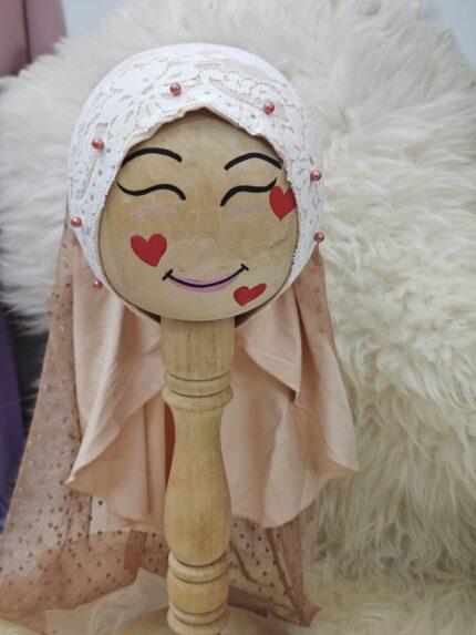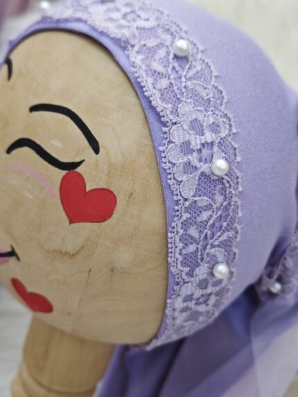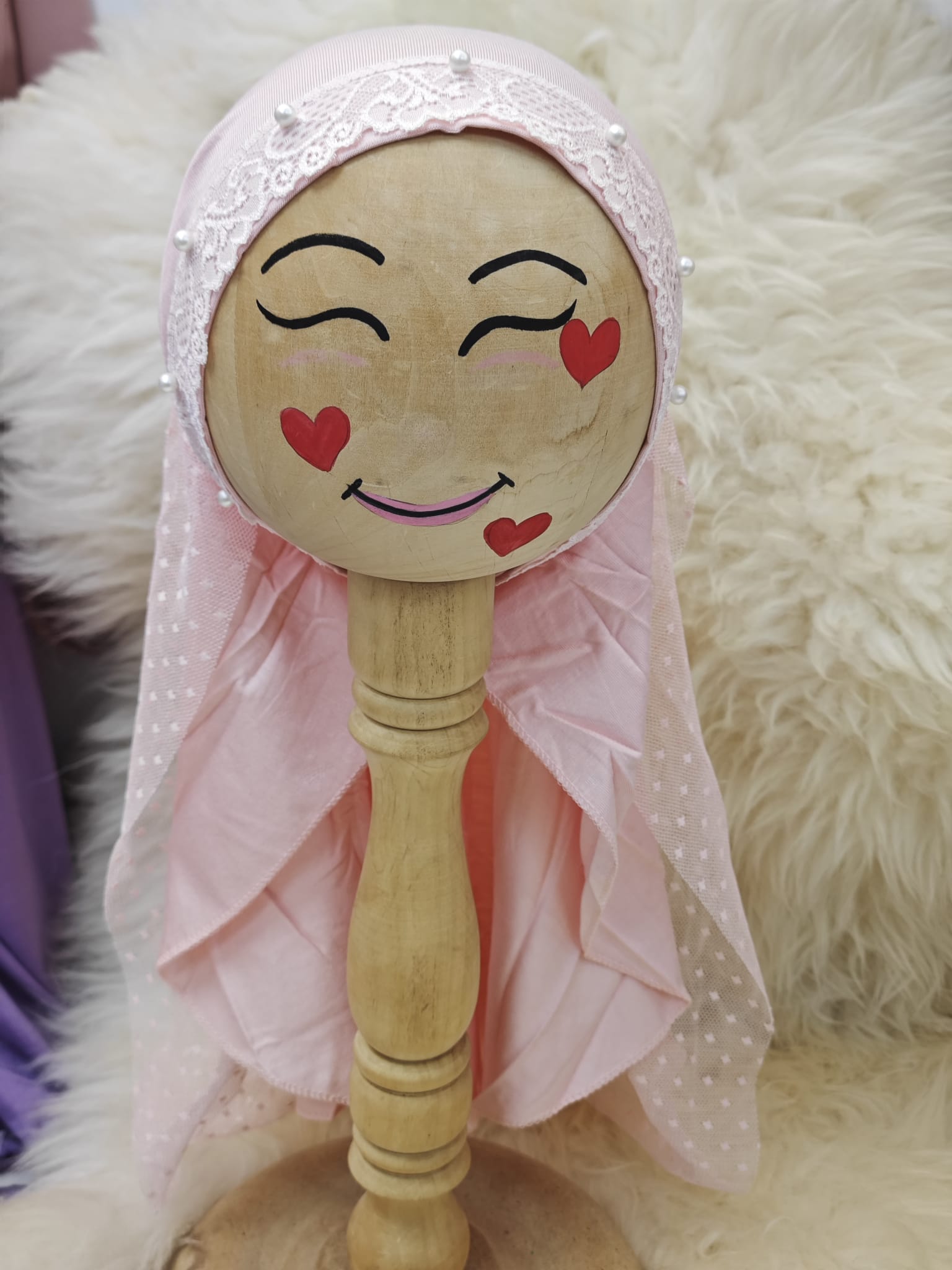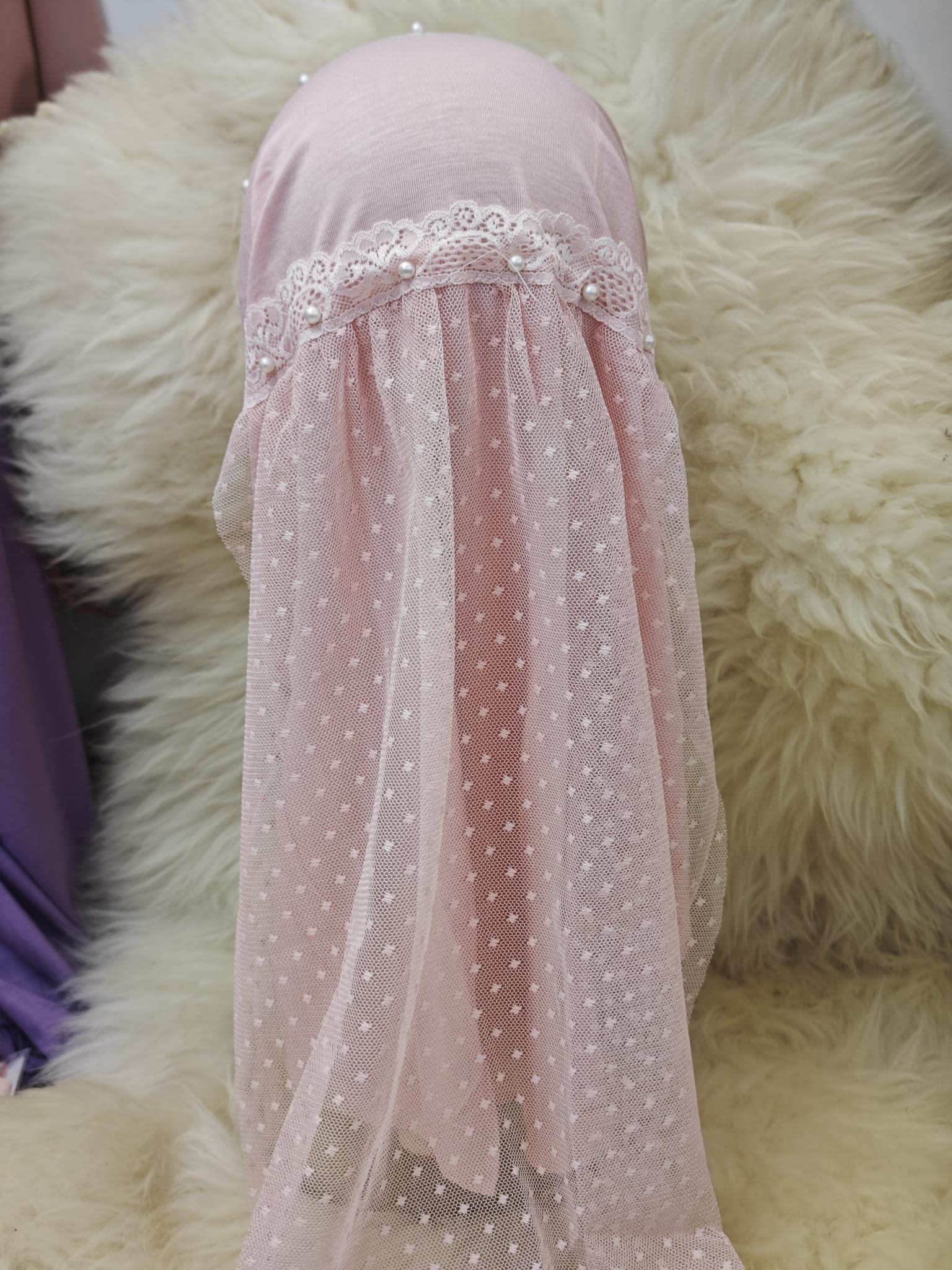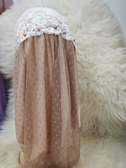 Esnek pamuk penyeden, arkası tüllü,önü boncuklu sevimli bone ile